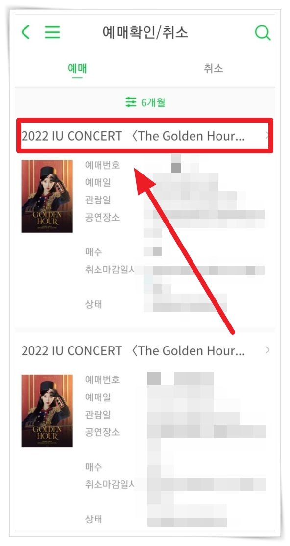 3. 예매내역에서 콘서트명을 클릭해 주세요.