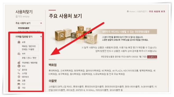 국민관광상품권 사용처 찾기