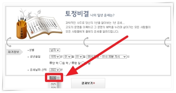 2. 성별, 생년월일 입력 후 하단 운세날짜를 2023으로 설정해 주세요.